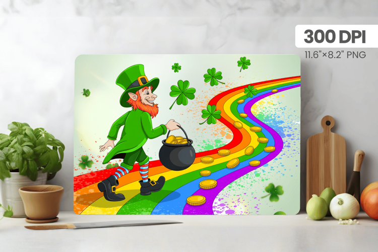 Leprechaun on Rainbow Road with Gold Cutting Board PNG Subli example image 1