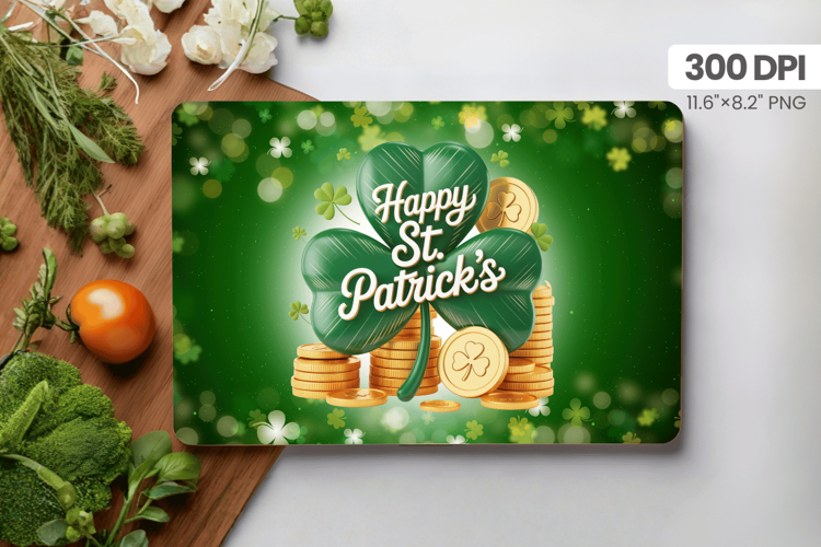 Happy St Patrick’s Day Shamrock and Gold Cutting Board PNG S example image 1