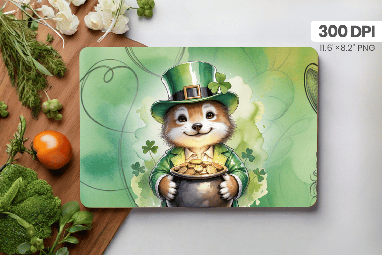 Similar Design Products to Lucky Raccoon Leprechaun with Gold Pot Cutting Board PNG Sub