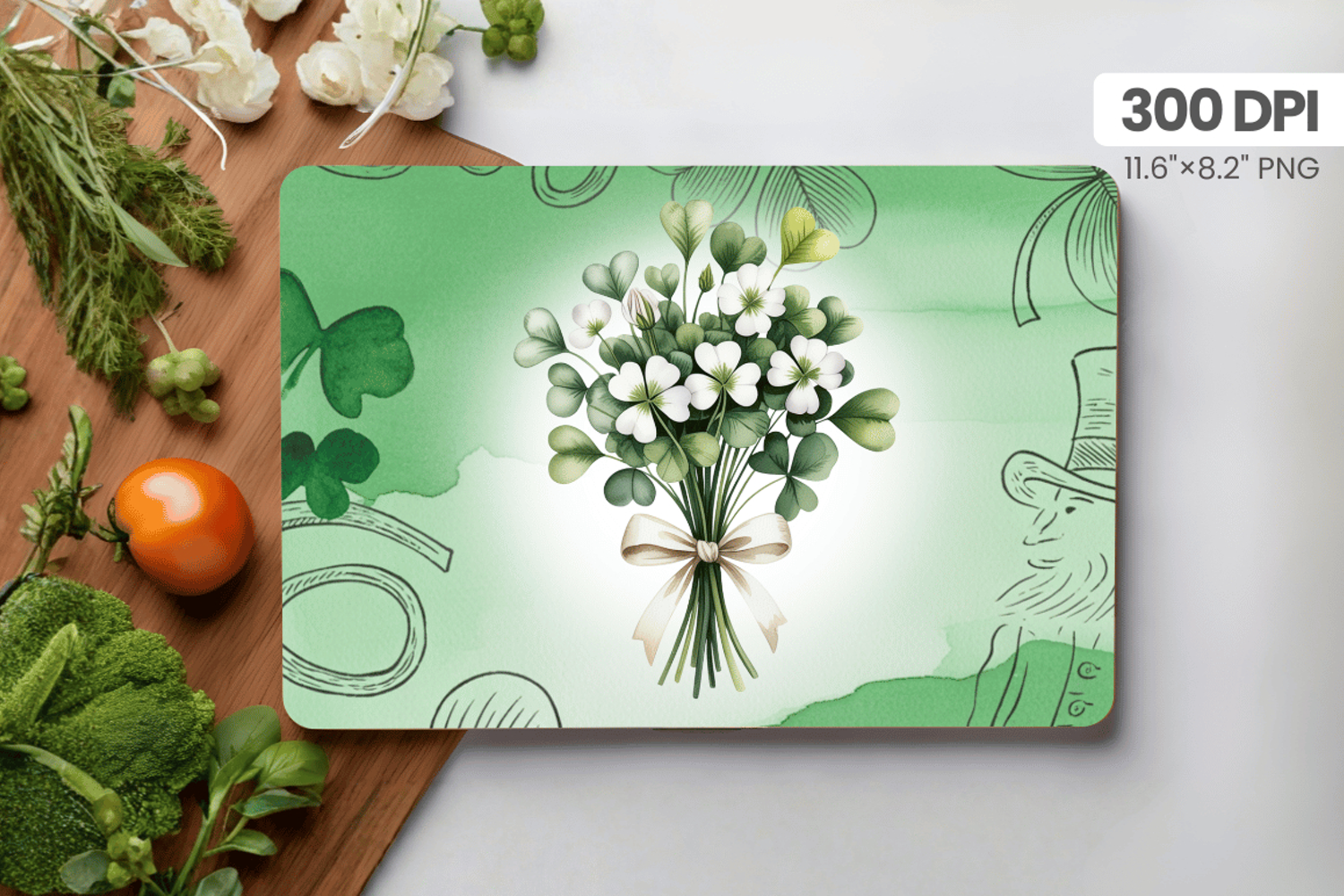 Clover Bouquet Elegant St Patrick’s Day Cutting Board PNG Su