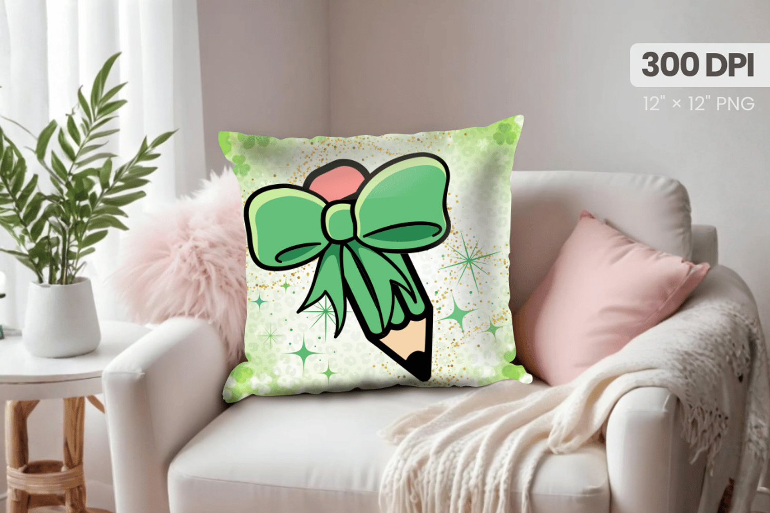 Similar Design Products to Cute Green Bow with Pencil Pillow PNG Sublimation Design