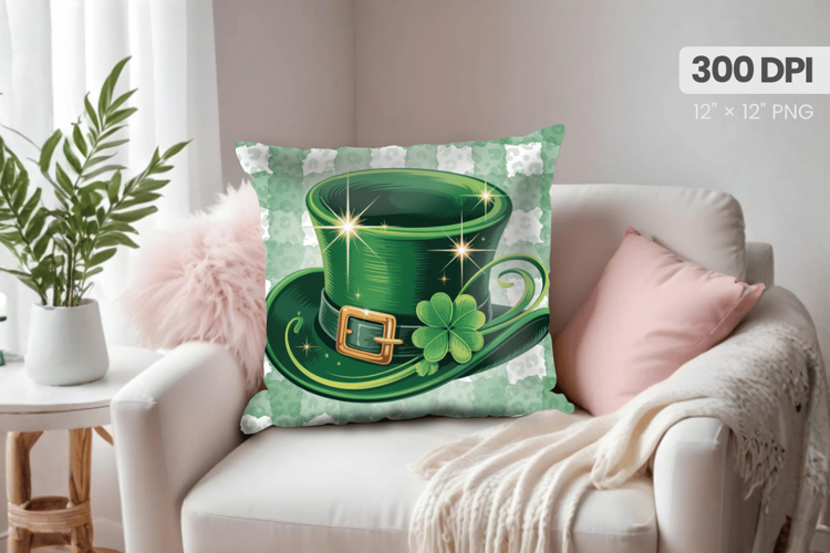 Green Leprechaun Hat with Shamrock Pillow PNG Sublimation De example image 1