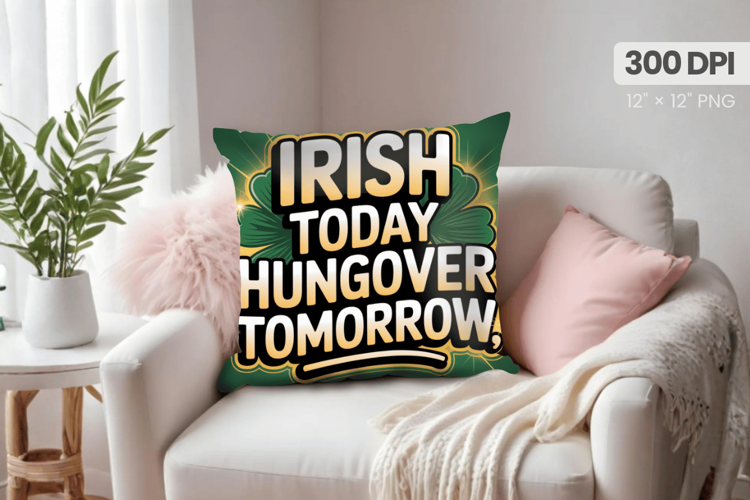 Irish Today Hungover Tomorrow Pillow PNG Sublimation Design