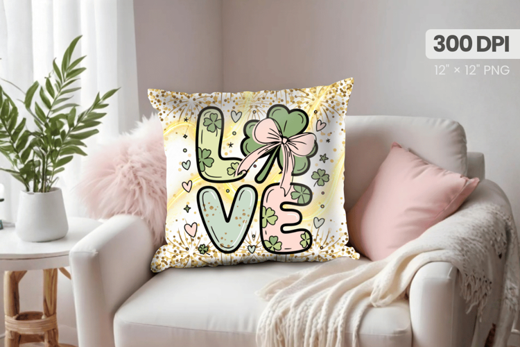 Love Shamrock Bow Pillow PNG Sublimation Design
