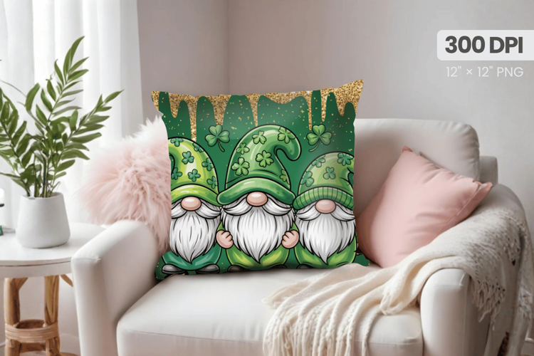Three Gnomes Leprechaun Hats Pillow PNG Sublimation Design