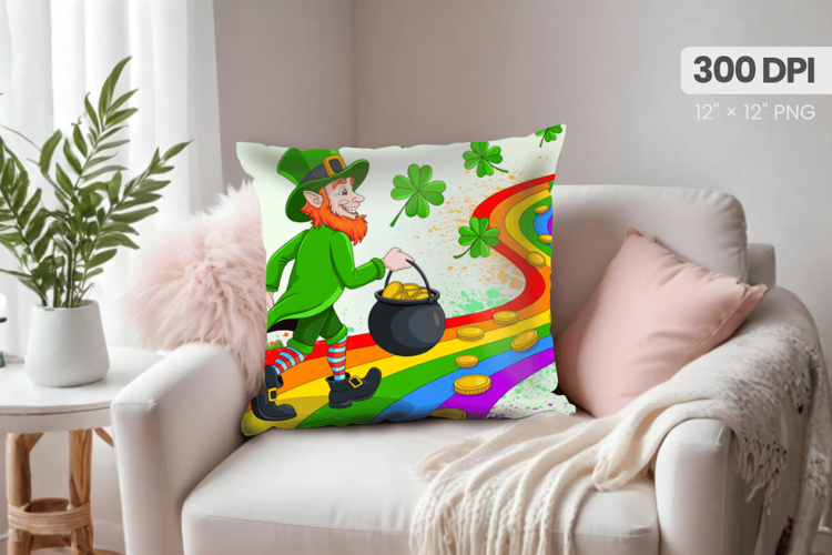 Leprechaun on Rainbow Road with Gold Pillow PNG Sublimation example image 1