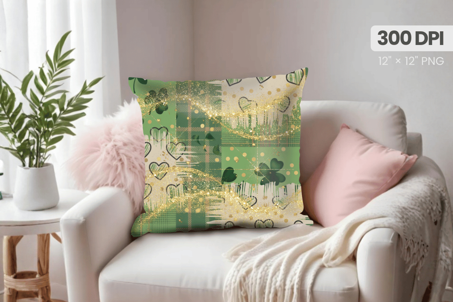 Similar Design Products to Green Shamrock Hearts Gold Pillow PNG Sublimation Design