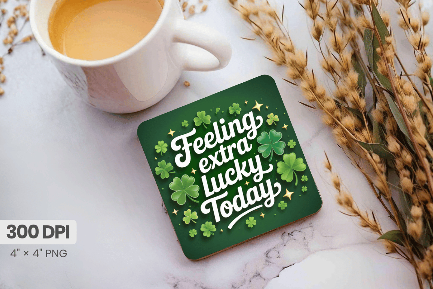 Feeling Extra Lucky Today Square Coaster PNG Sublimation Des example image 1