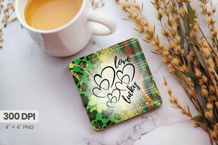 Love and Lucky Handwritten St Patrick’s Day Square Coaster P example image 1