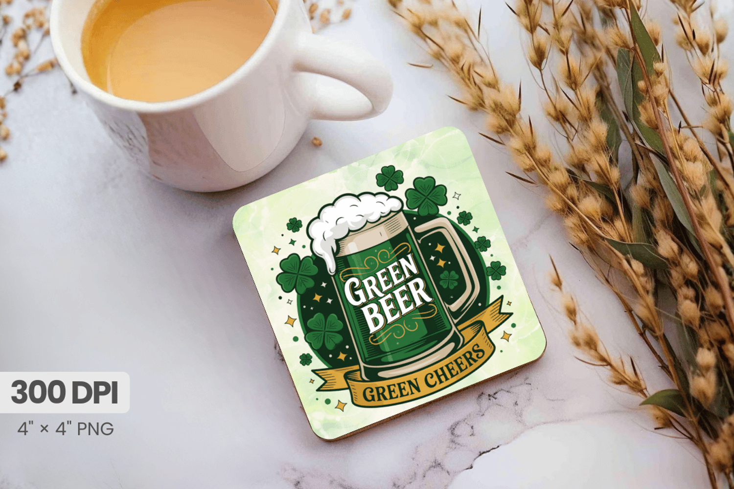 Green Beer Green Cheers Square Coaster PNG Sublimation Desig