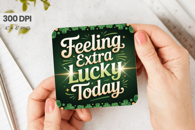 Feeling Extra Lucky Today Square Coaster PNG Sublimation Des