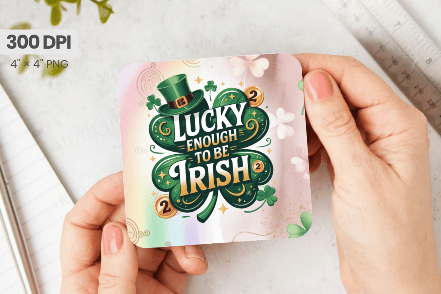 Lucky Enough to Be Irish Square Coaster PNG Sublimation Desi example image 1