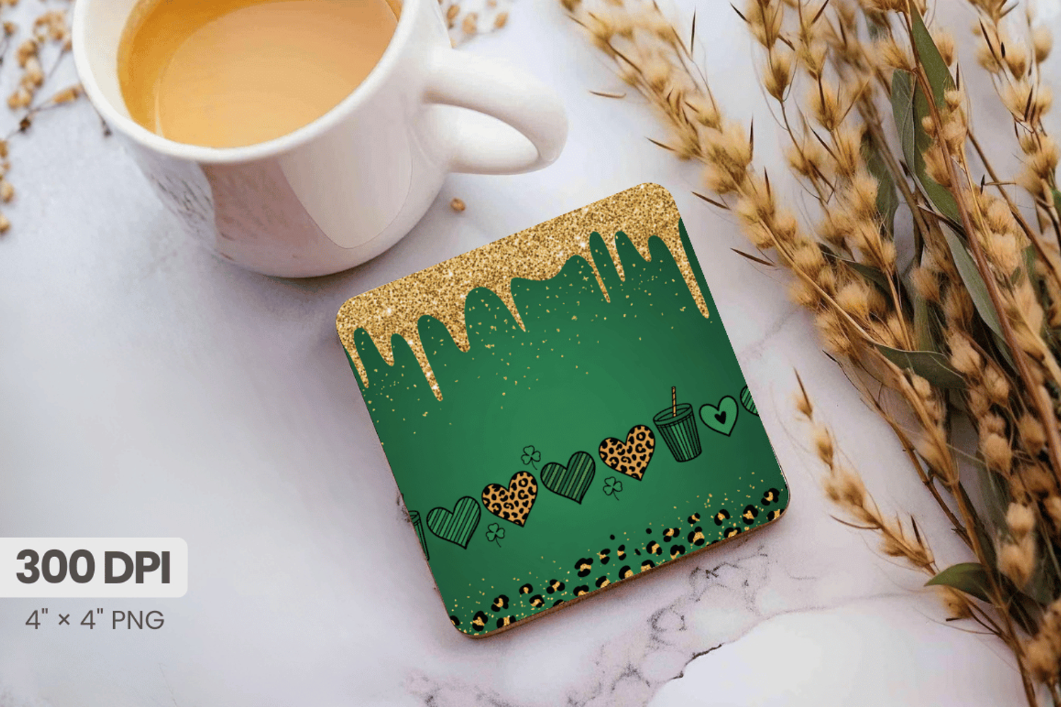 Similar Design Products to Green and Gold Drip Glitter Square Coaster PNG Sublimation D
