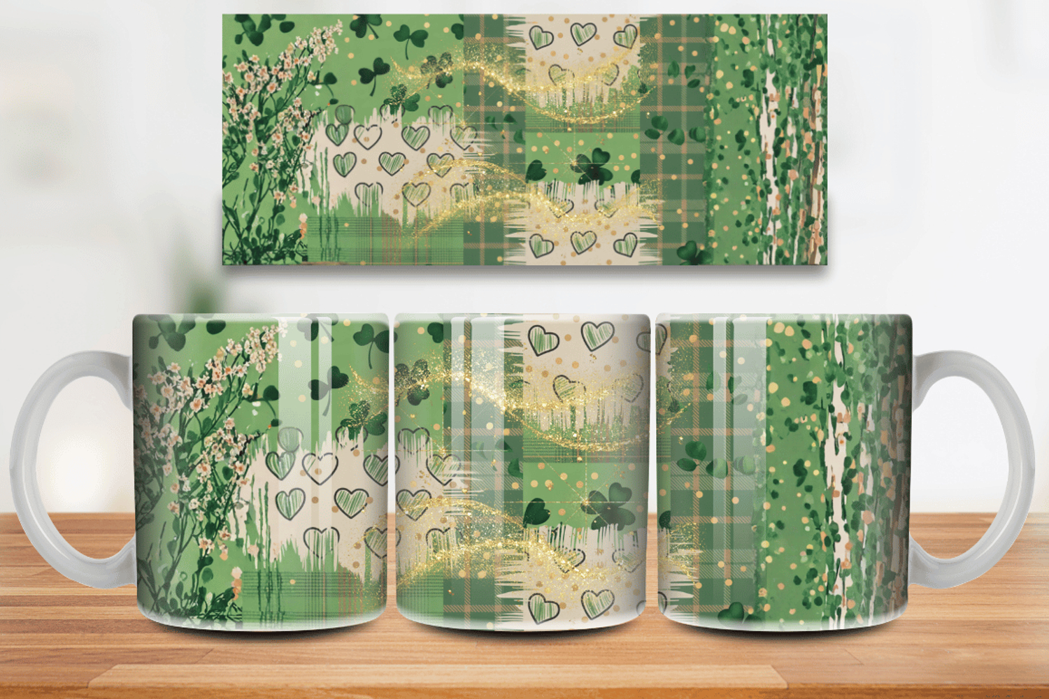 Similar Design Products to Green Shamrock Hearts Gold Mug Wrap PNG Sublimation Design
