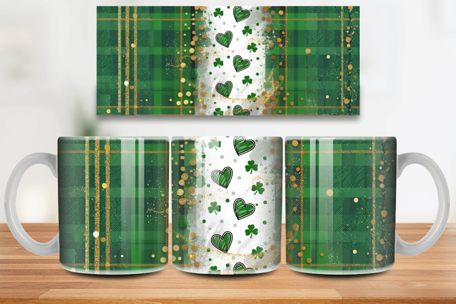 Similar Design Products to Green Plaid Shamrock Hearts Glitter Mug Wrap PNG Sublimation