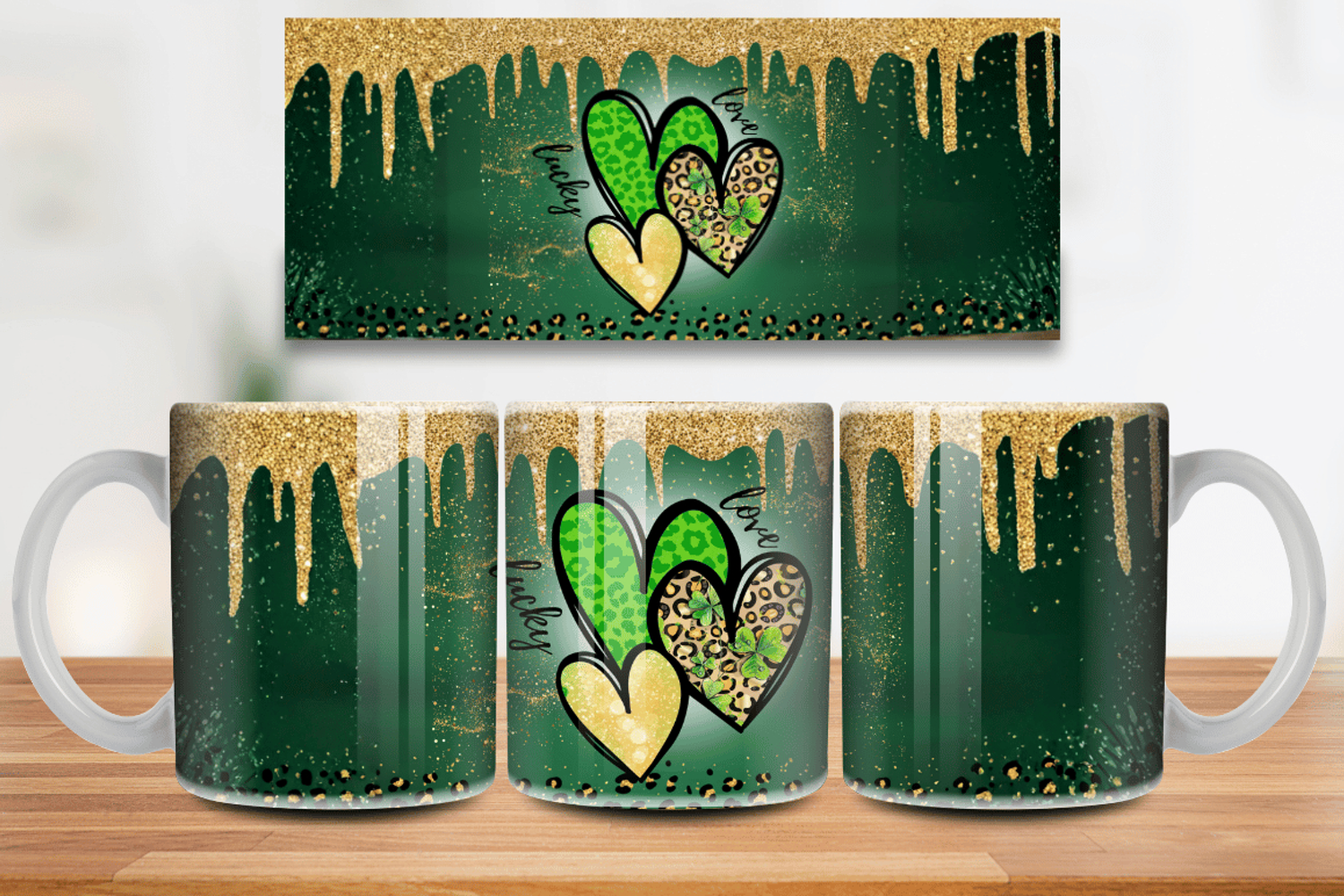 Lucky Hearts Shamrock Love Mug Wrap PNG Sublimation Design