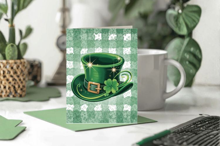 Green Leprechaun Hat with Shamrock Greeting Card PNG Sublima