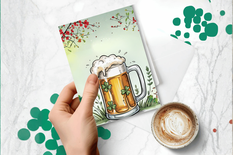 Irish Beer Mug with Clover Greeting Card PNG Sublimation Des example image 1