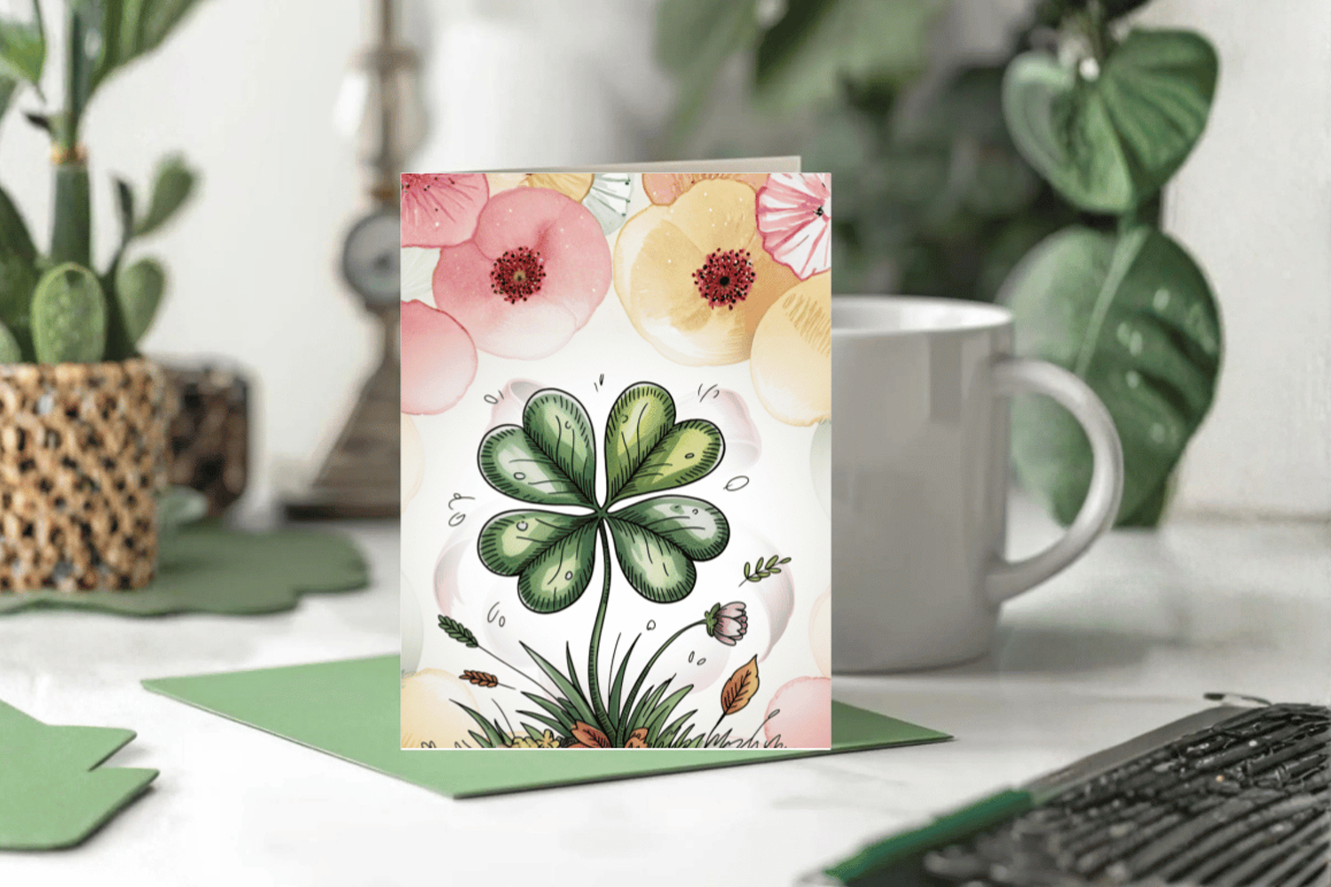 Four Leaf Clover Botanical Greeting Card PNG Sublimation Des