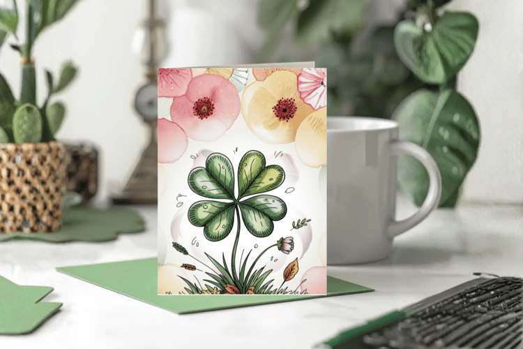 Similar Design Products to Four Leaf Clover Botanical Greeting Card PNG Sublimation Des