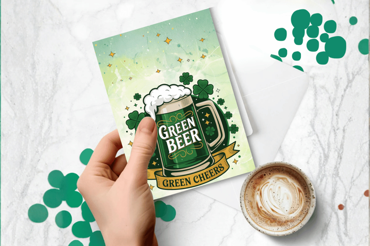 Green Beer Green Cheers Greeting Card PNG Sublimation Design example image 1