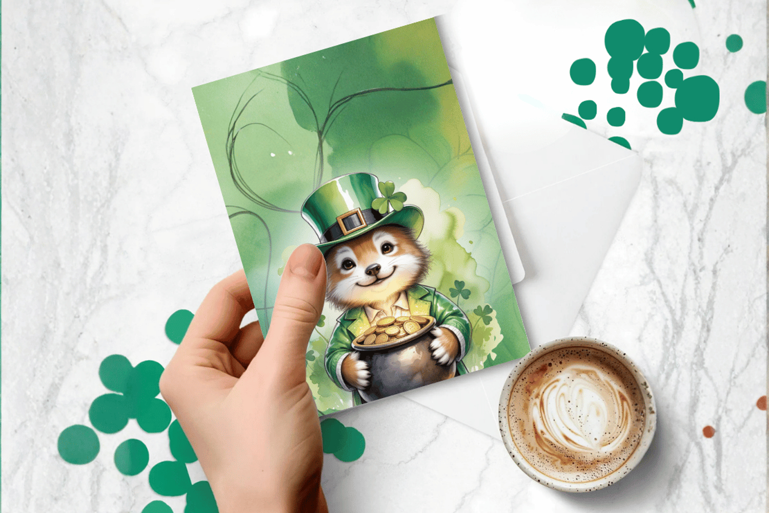 Lucky Raccoon Leprechaun with Gold Pot Greeting Card PNG Sub