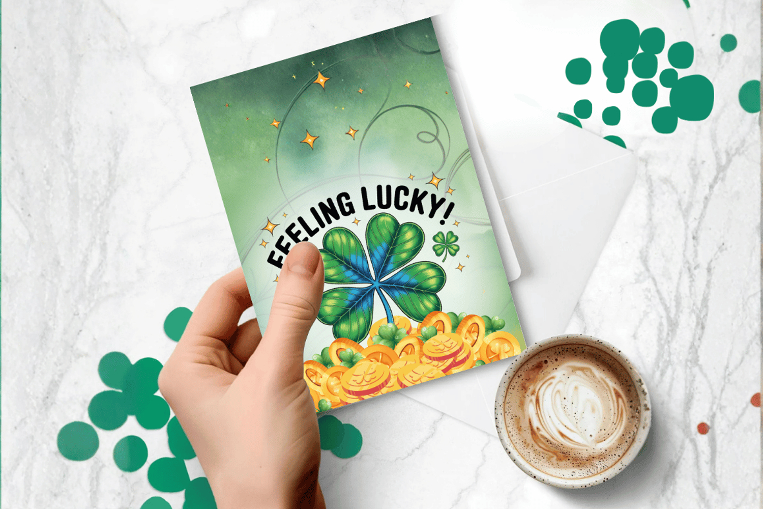 Feeling Lucky Shamrock and Gold Greeting Card PNG Sublimatio