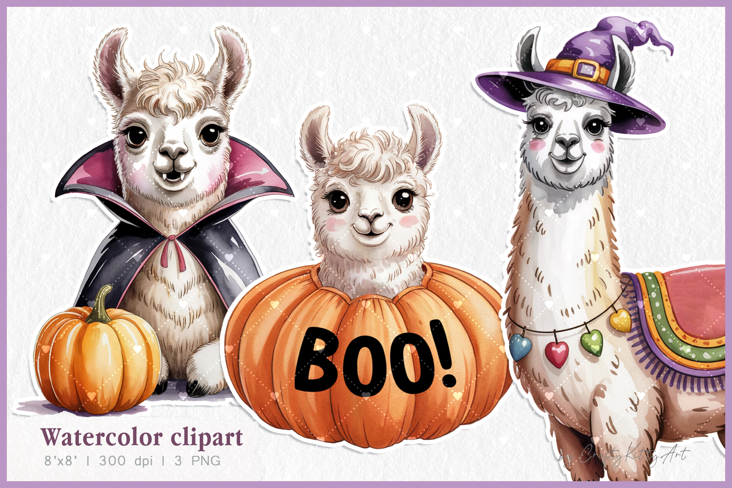Similar Design Products to Halloween llama PNG clipart, Watercolor llamas, baby animals