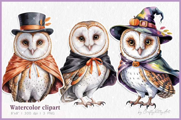 Similar Design Products to Halloween barn owl PNG clipart, Cute watercolor animals