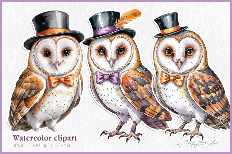 Gentleman owl in top hat PNG clipart Cute watercolor animals example image 1