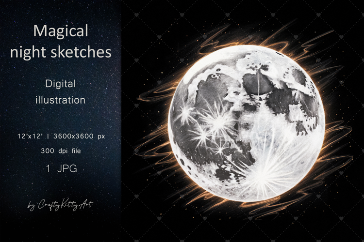 Similar Design Products to Magical full moon dark pencil art JPG printable illustration
