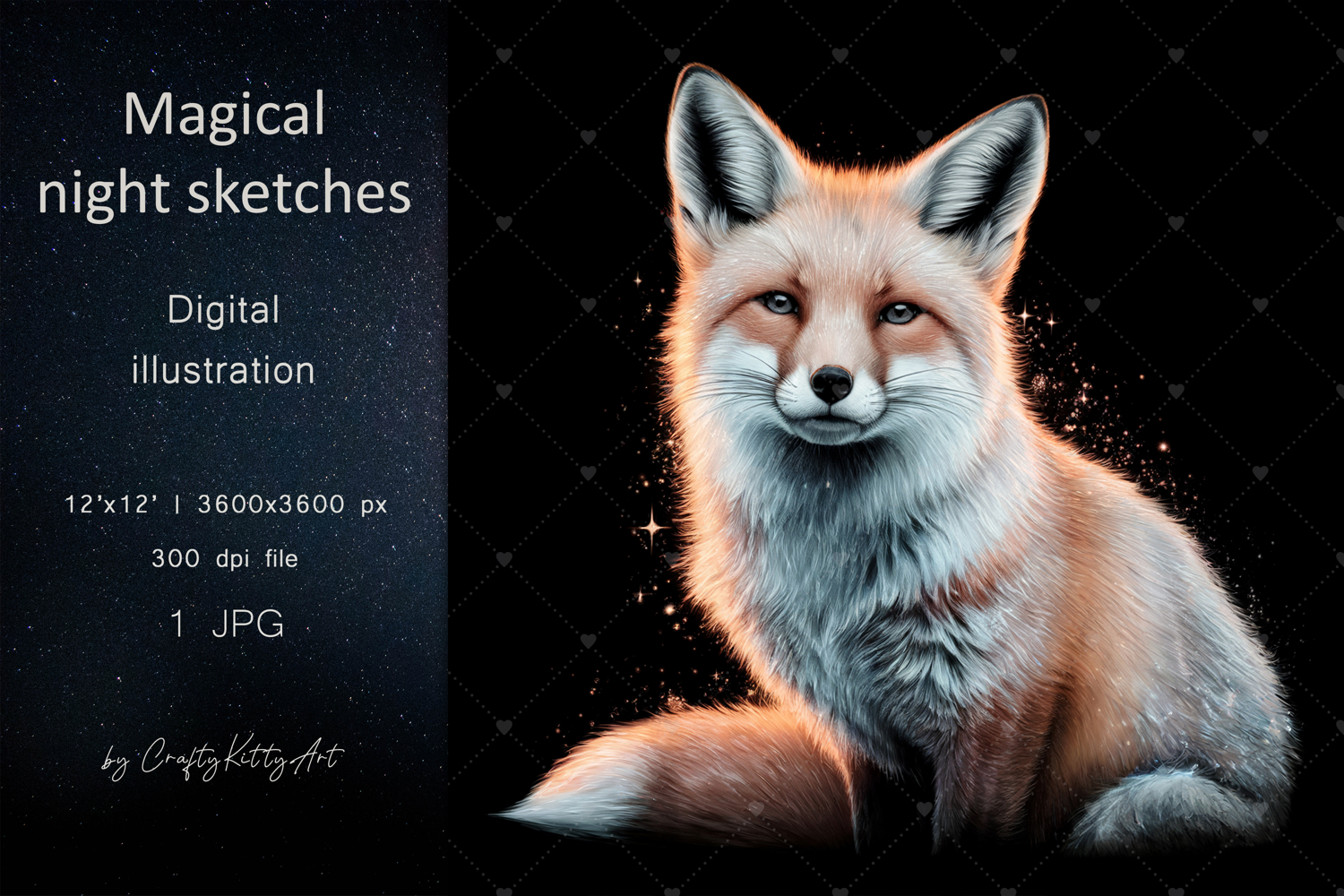 Similar Design Products to Magical fox dark pencil art JPG printable illustration