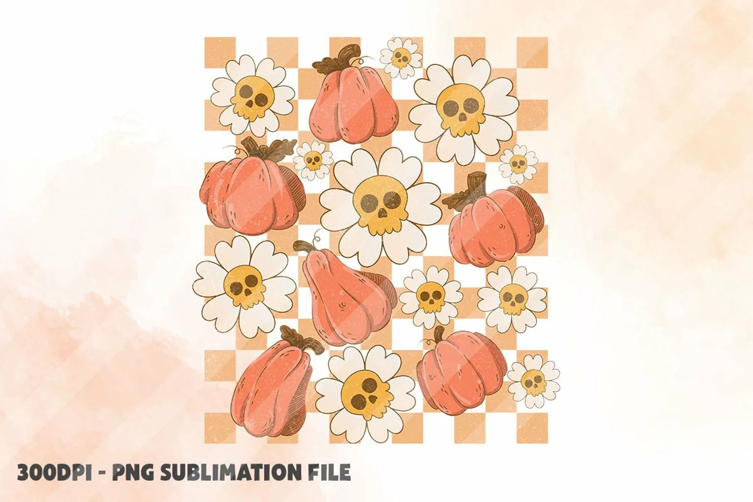 Similar Design Products to Checkered Retro Halloween Pumpkin And Skull Flowers PNG