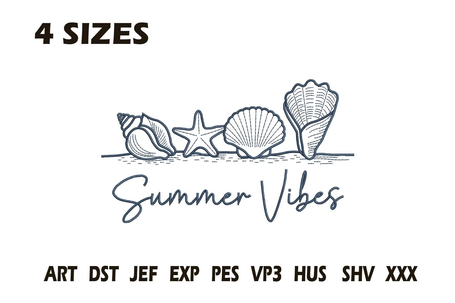 Bring the feeling of sunny days and ocean breezes to your projects with this Summer Vibes Embroidery Design! Featuring a line of seashells, a starfish, and elegant handwritten text, this minimalist beach-themed design is perfect for tote bags, beach towels, hats, or summer clothing.