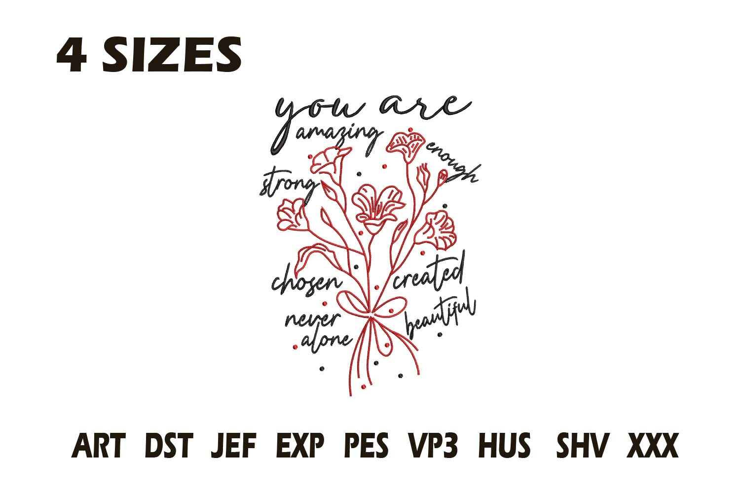 Floral Embroidery You Are Enough Motivational Design Inspirational Embroidery Dst File Pes File Positive Quote Embroidery Vp3 Embroidery Self Love Embroidery Affirmations Embroidery