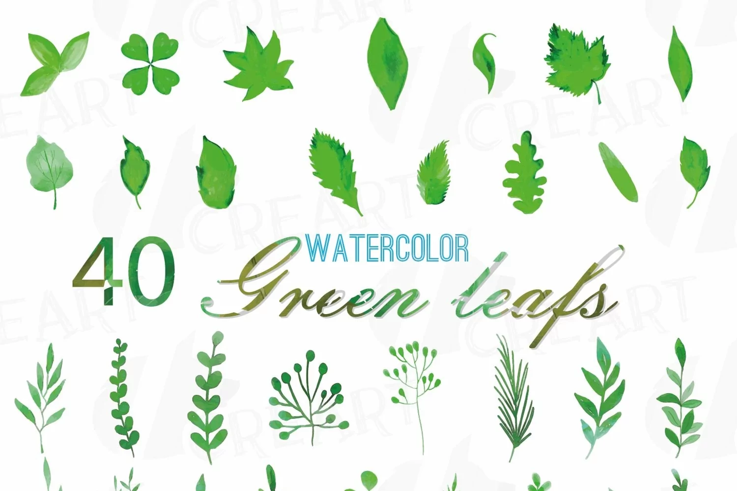 Watercolor Green leaves and branches clip art pack comes with 40 different watercolor set element that you can use to dress up your Party, invitations, clothing’s, cards, stickers, web design, or scrapbooking project.