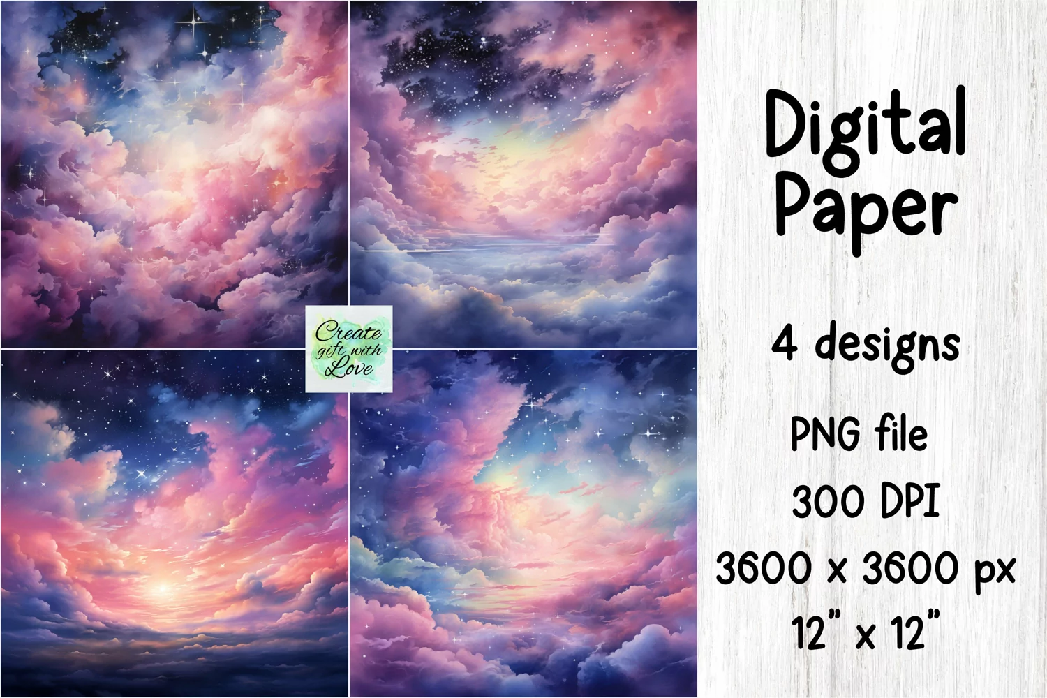 Similar Design Products to Dreamy Digital Paper | PNG Background | Scrapbooking | Wall