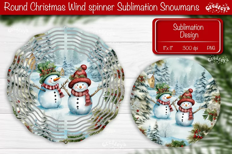 Round Christmas Wind Spinner design with a cute Snowman PNG. These Christmas décor of wind spinners bring a touch of snow-filled charm and a warm, fuzzy feeling to your home decoration.