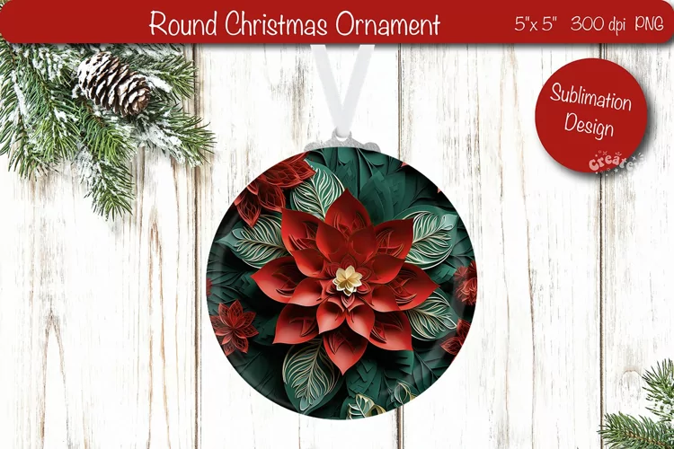 Round Christmas ornament sublimation with 3D Flower PNG. 3D Christmas Sublimation Round Ornament! Vibrant colors, and lasting memories. Perfect for your tree or as a delightful gift. Happy holidays!