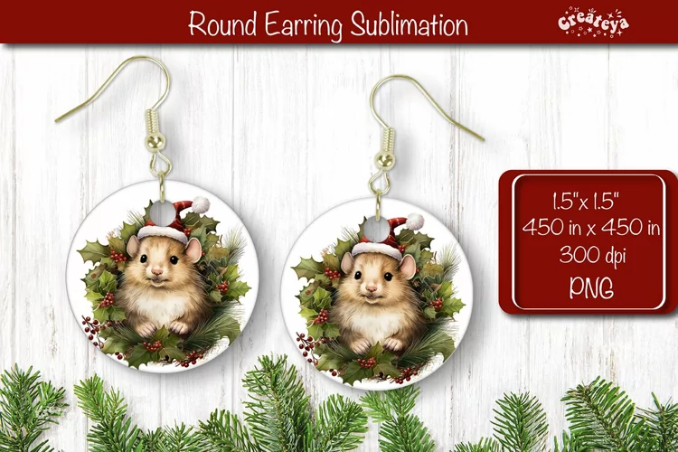 Christmas Round Earring Sublimation Designs Christmas Animal example image 1