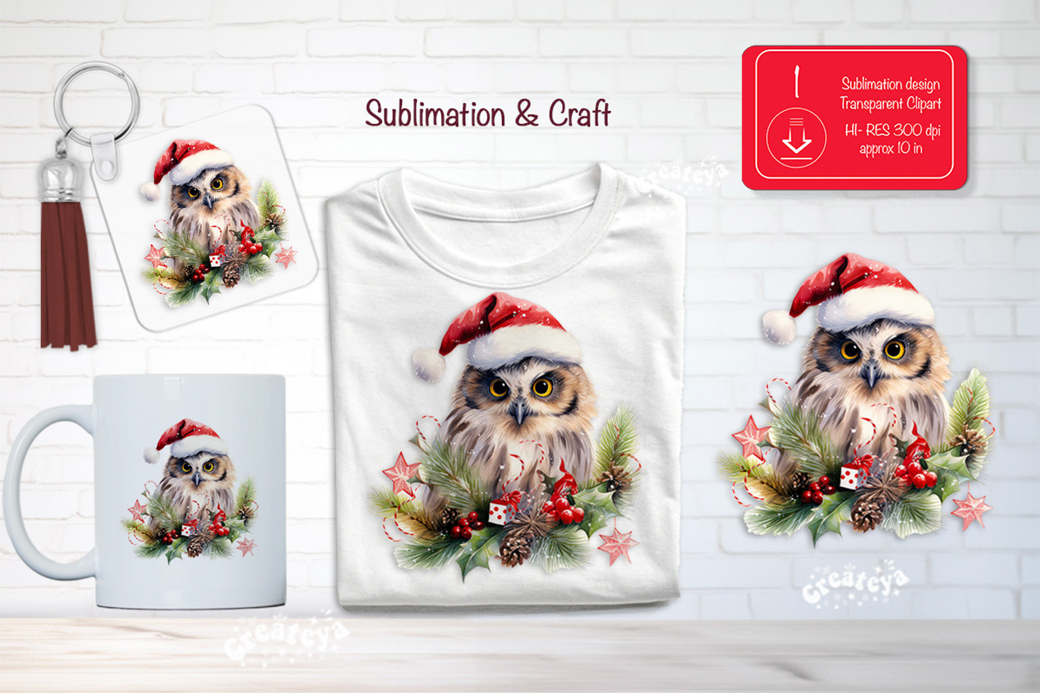 Similar Design Products to Christmas Watercolor Clipart Sublimation owl holiday animal