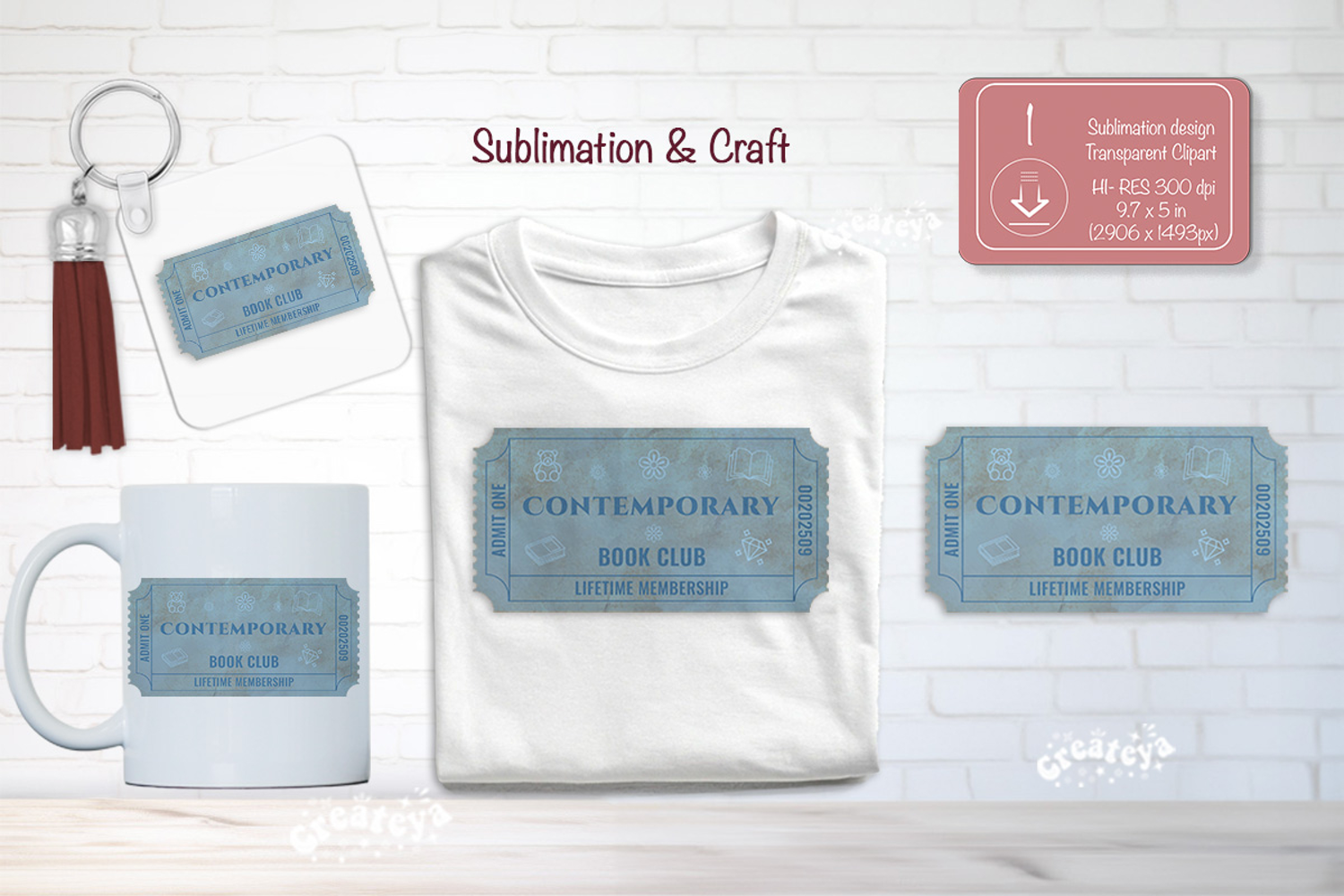 Book Club Ticket Sublimation is perfect for every reader and crafter. File is high-resolution (300 DPI) with a transparent background, perfect for sublimation and printable crafts. Use these design for t-shirts, mugs, tote bags, bookmarks, stickers, scrapbooking, and unique gifts for book lovers.
