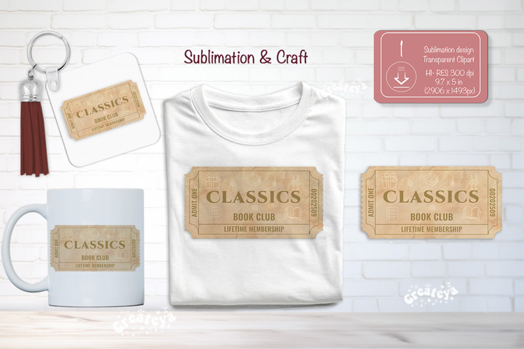 Book Club Ticket Sublimation is perfect for every reader and crafter. File is high-resolution (300 DPI) with a transparent background, perfect for sublimation and printable crafts. Use these design for t-shirts, mugs, tote bags, bookmarks, stickers, scrapbooking, and unique gifts for book lovers.