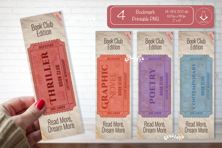 You can find bundle with 24 Book Club Bookmark designs here: https://designbundles.net/createya/6182329-book-club-ticket-bookmark-bundle-reading-genre-tic