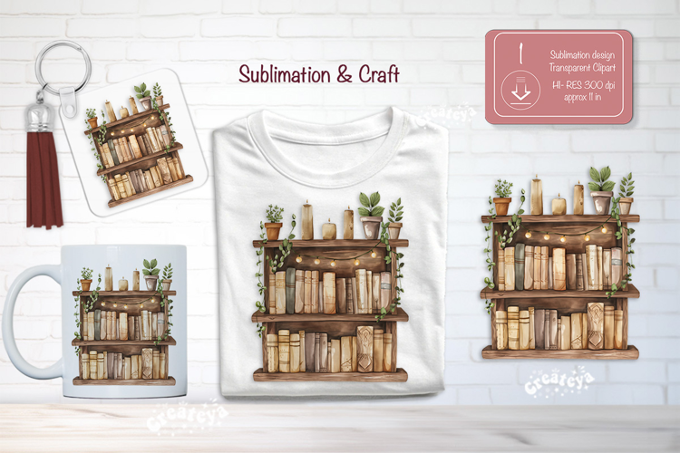 Similar Design Products to Watercolor Book Lover Clipart Sublimation bookshelf png