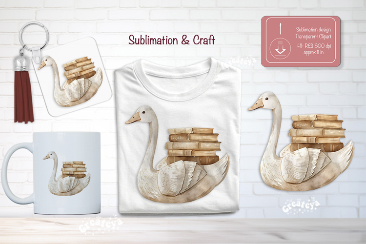 Similar Design Products to Watercolor Book Lover Clipart Sublimation goose with books