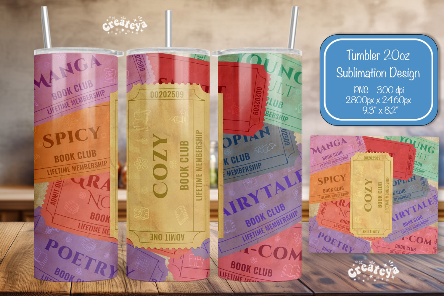You can find more Bundle with 120 Tumbler designs here: https://designbundles.net/createya/6267655-book-club-ticket-tumbler-wrap-bundle-library-readi