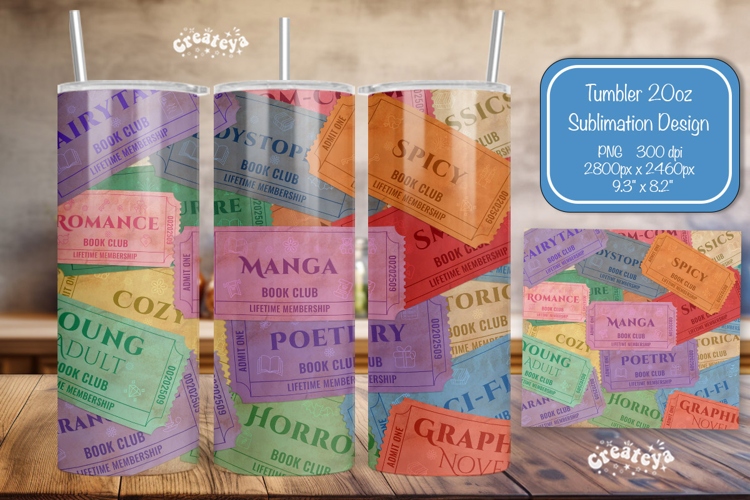 You can find more Bundle with 120 Tumbler designs here: https://designbundles.net/createya/6267655-book-club-ticket-tumbler-wrap-bundle-library-readi