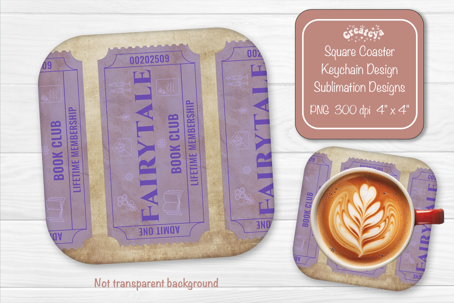 Book Club Ticket Sublimation Square Coaster PNG Vintage example image 1