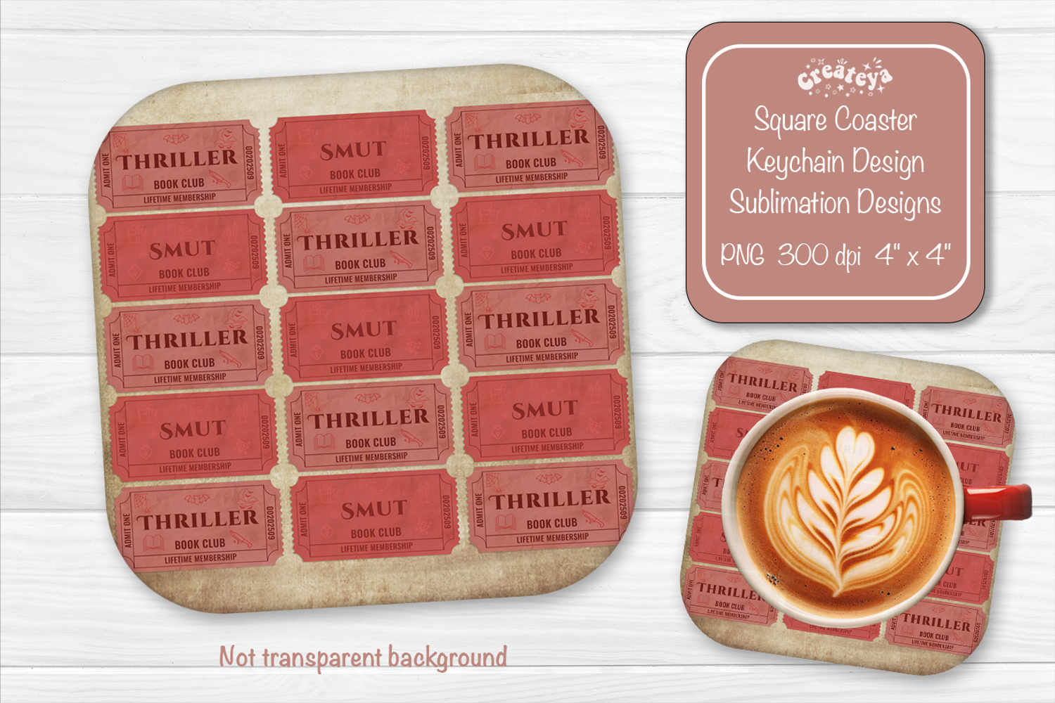 You can find more Bundle with 120 designs here: https://designbundles.net/createya/6314502-book-club-ticket-bundle-sublimation-square-coaster